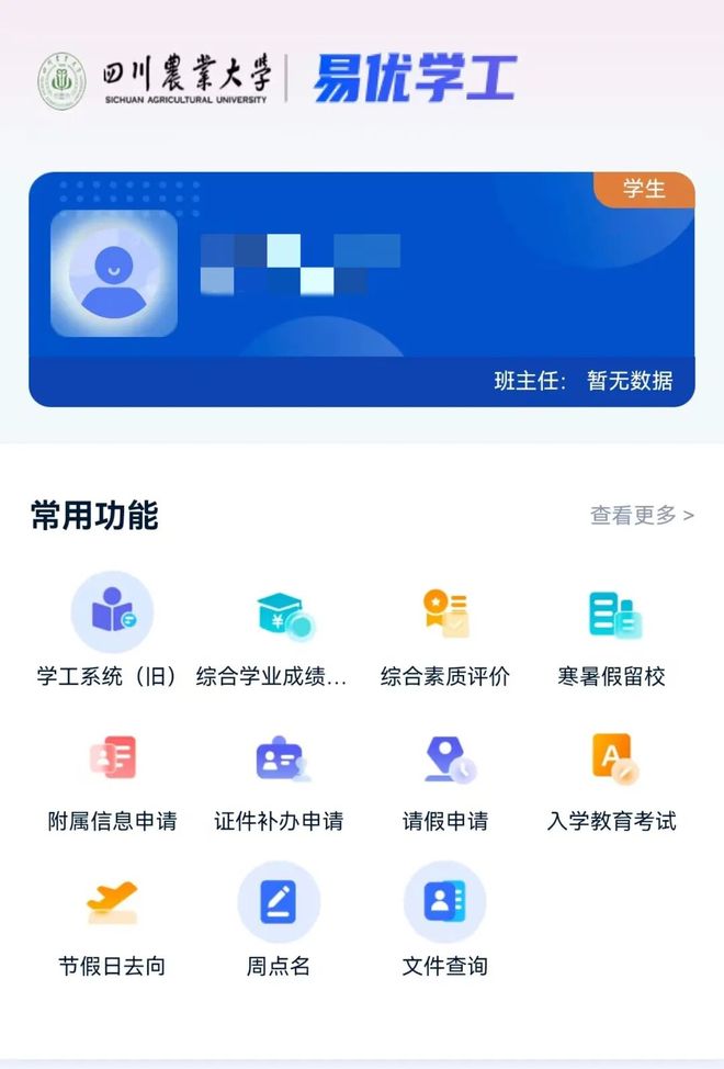 它是你离校请假、回校签到的必备小程序,在这里,班主任可以实时了解到你的在校情况。