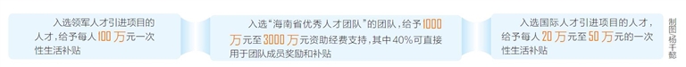 公告明确,入选领军人才引进项目的人才,给予每人100万元一次性生活补贴;入选“海南省优秀人才团队”的团队,给予1000万元至3000万元资助经费支持,其中40%可直接用于团队成员奖励和补贴;入选国际人才引进项目的人才,给予每人20万元至50万元的一次性生活补贴。